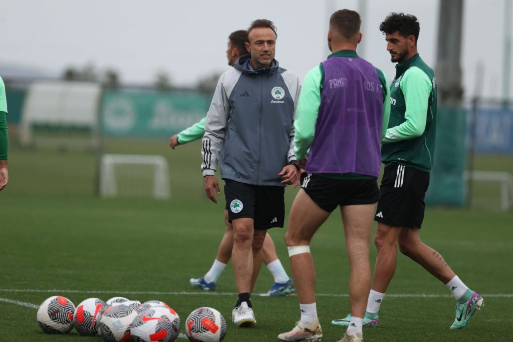 Με το βλέμμα στο ντέρμπι με τον Ολυμπιακό την ερχόμενη Κυριακή, ο Κόντης προπόνησε για πρώτη φορά τους παίκτες του «τριφυλλιού». Το πρόγραμμα περιελάμβανε προθέρμανση, rondo, δουλειά στην κυκλοφορία της μπάλας και δουλειά σε ανάπτυξη και τελειώματα.