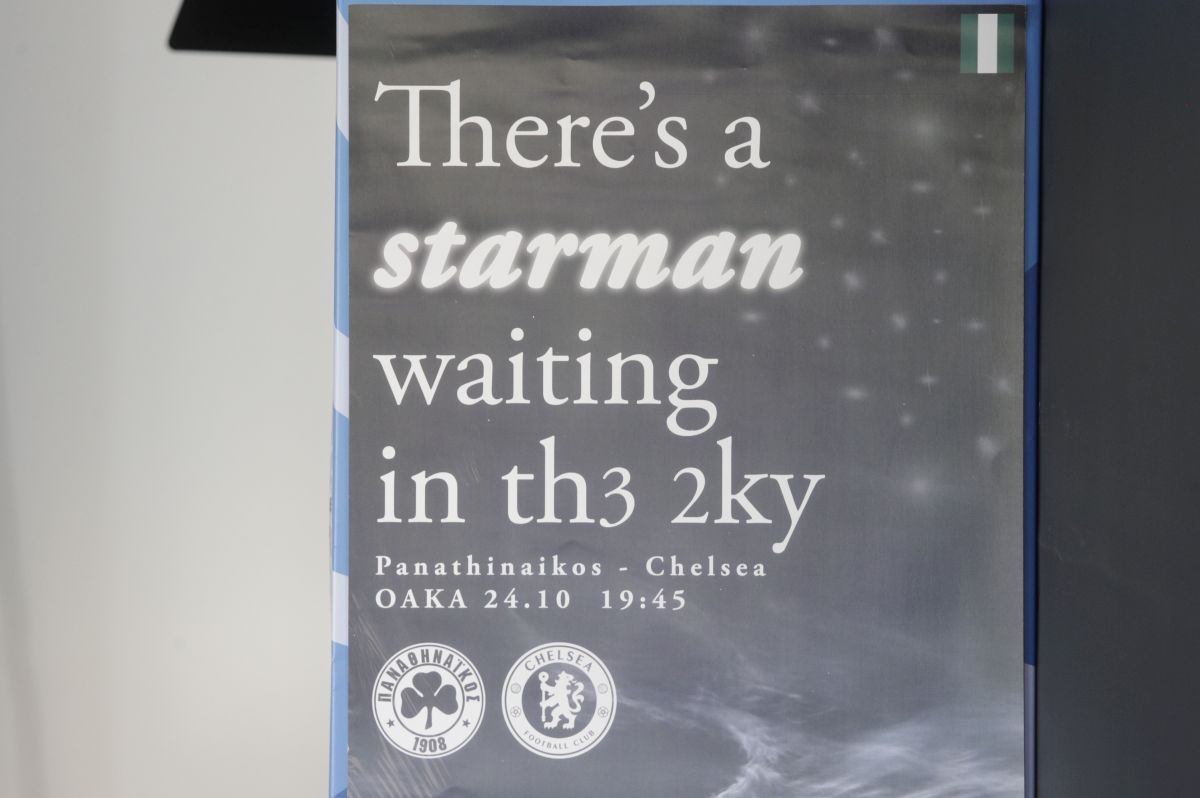 Μετά το υπέροχο μήνυμα που «ανέβασε» ο Παναθηναϊκός στα social media του κλαμπ το μεσημέρι της Τετάρτης (23/10), με τη φωτογραφία ενός έναστρου ουρανού γράφοντας «32 ώρες μέχρι να συναντηθούμε πάλι» σαν αφιέρωση προς τον αδικοχαμένο Τζορτζ Μπάλντοκ, οι «πράσινοι» είχαν ετοιμάσει κι άλλη μία αφιέρωση στην αίθουσα Τύπου, ενόψει του αυριανού (24/10, 19:45) αγώνα με την Τσέλσι.