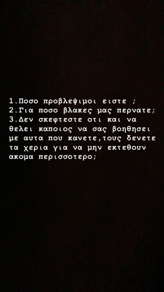 3. Δεν σκέφτεστε ότι και να θέλει κάποιος να σας βοηθήσει με αυτά που κάνετε, τους δένετε τα χέρια για να μην εκτεθούν ακόμα περισσότερο;”, έγραψε.