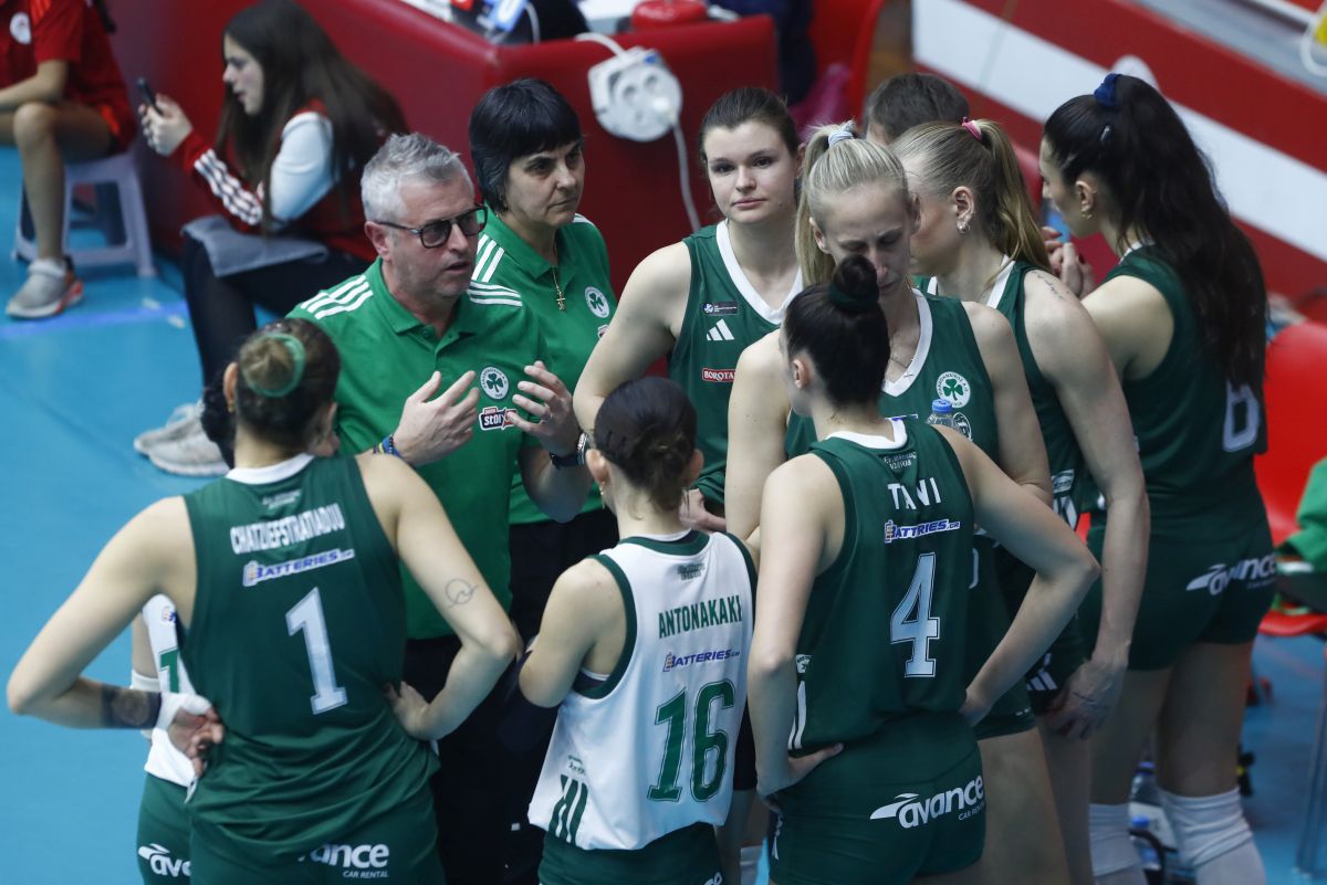 Οι «πράσινες» προηγήθηκαν με 0-2 σετ και στη συνέχεια ο κόουτς Κιαπίνι άνοιξε το ροτέισον προκειμένου να ξεκουράσει κάποιες αθλήτριες ενόψει του δεύτερου ημιτελικού του CEV Challenge Cup κόντρα στον Πανιώνιο (25/2, 19:00) στη Νέα Σμύρνη.