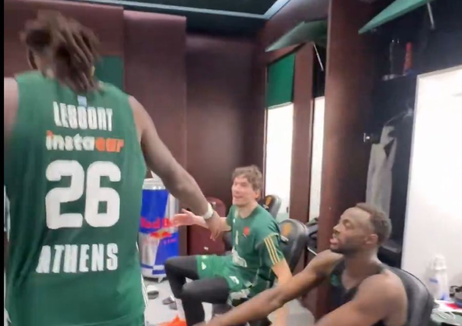 Ο Γάλλος σέντερ μόλις μπήκε στα αποδυτήρια, αποθεώθηκε από τους παίκτες του Παναθηναϊκού, ενώ αποθεωτική ήταν η υποδοχή και στον Τζέντι Όσμαν, με τον Κώστα Σλούκα να δίνει ακόμη ένα show.